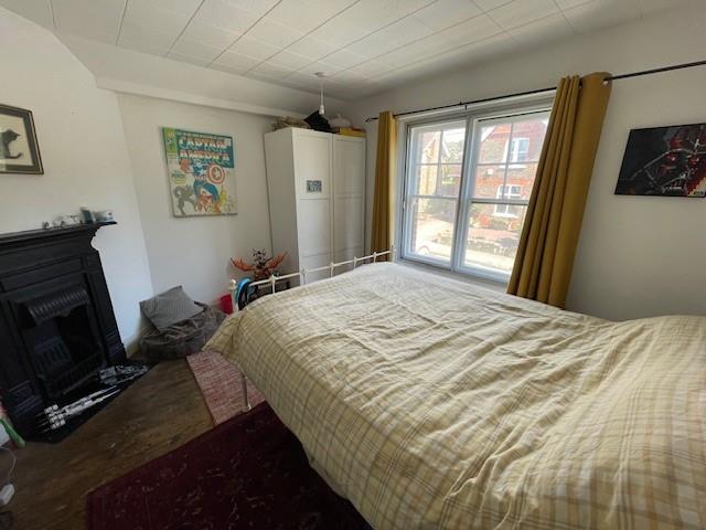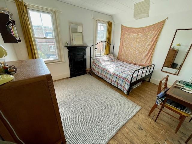 Sash window, stripped wooden floorboards, cast Iron fireplace, radiator, built in wardrobe cupboard,