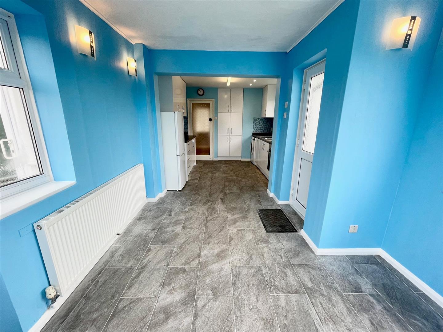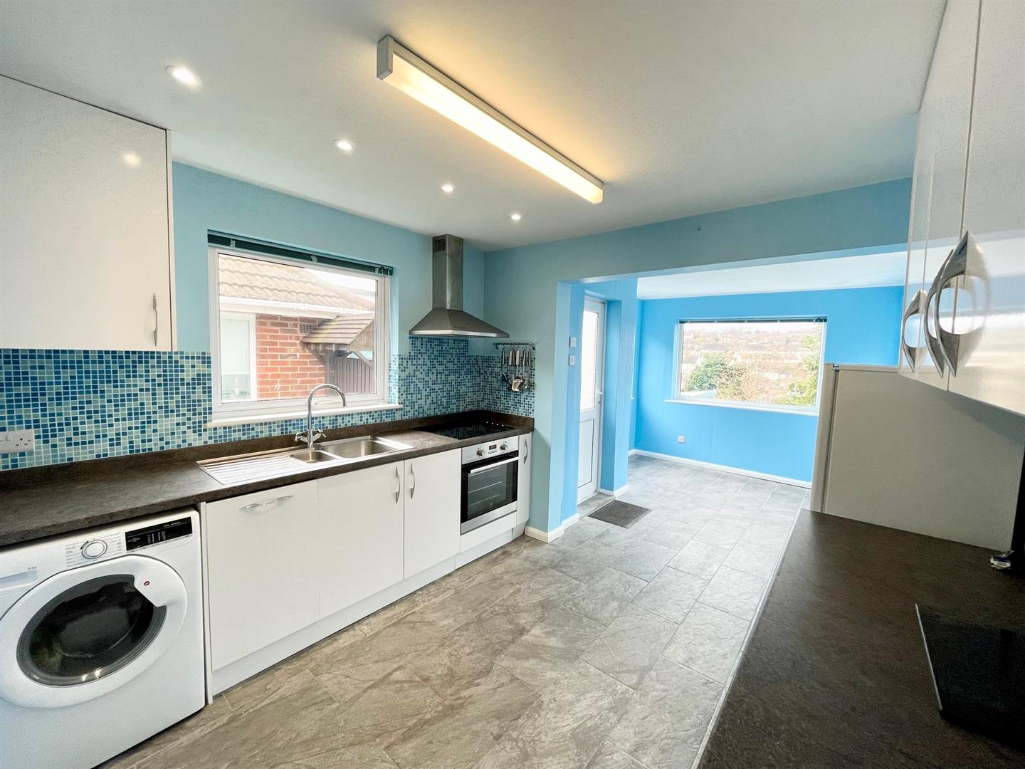 Double aspect double glazed windows over looking rear garden, tiled flooring, radiator, modern re fitted wall & base units with matching drawers and additional cupboards, part tiled walls, ample working surfaces with inset stainless steel sink unit, Integral slim line dishwasher four ring halogen hob with matching oven and extractor hood, free standing fridge freezer and washing machine, two double glazed side doors leading to rear garden and side access path.