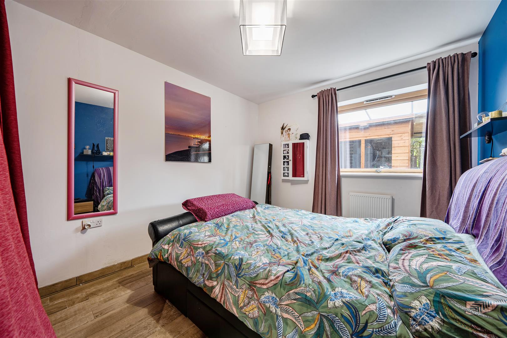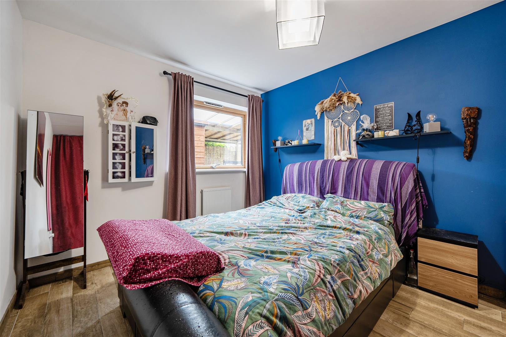 radiator, wardrobe, tiled floor, triple glazed window,