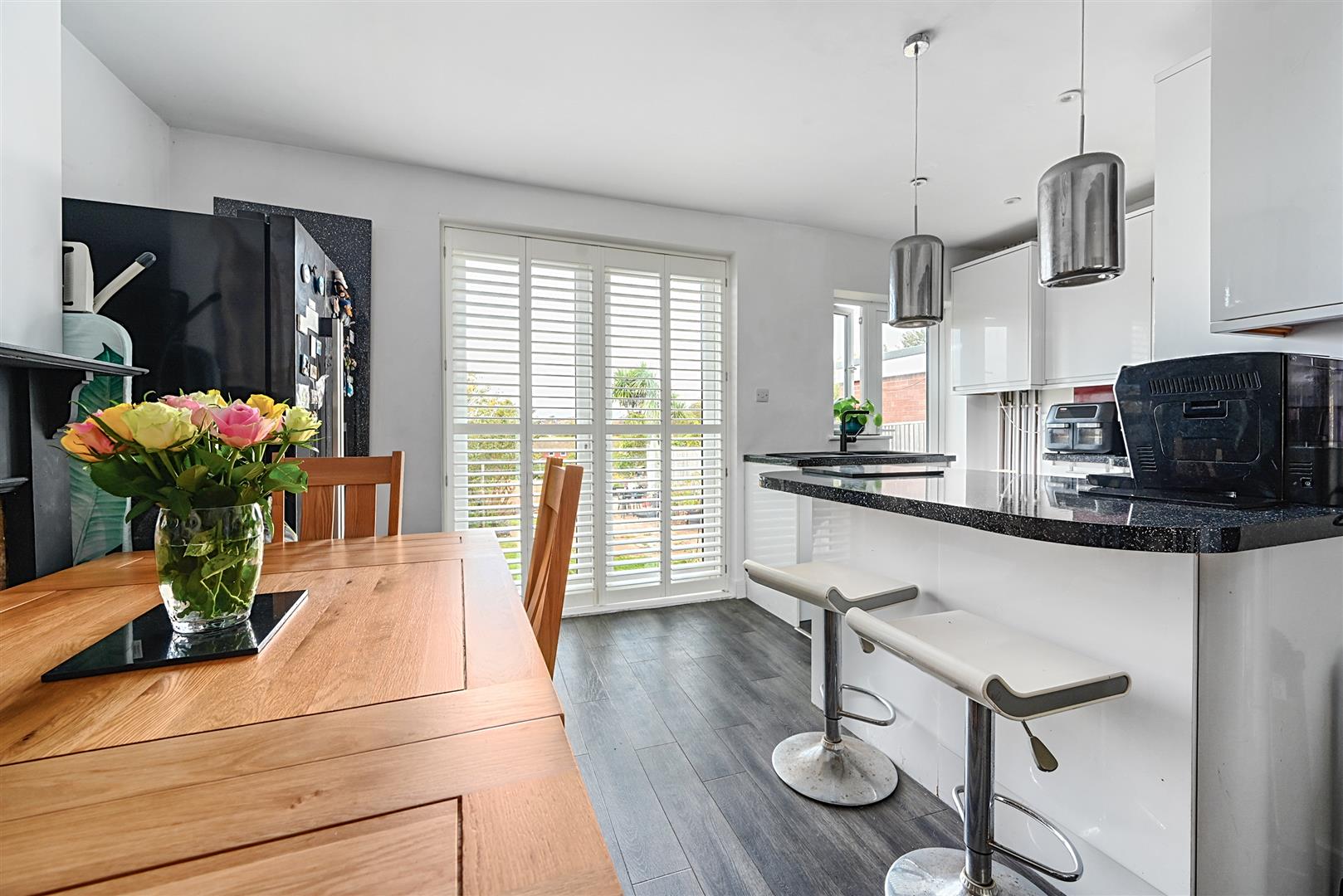Space for dining table, Amtico flooring, space for an American style fridge freezer, upvc double glazed double doors with made to measure shutters