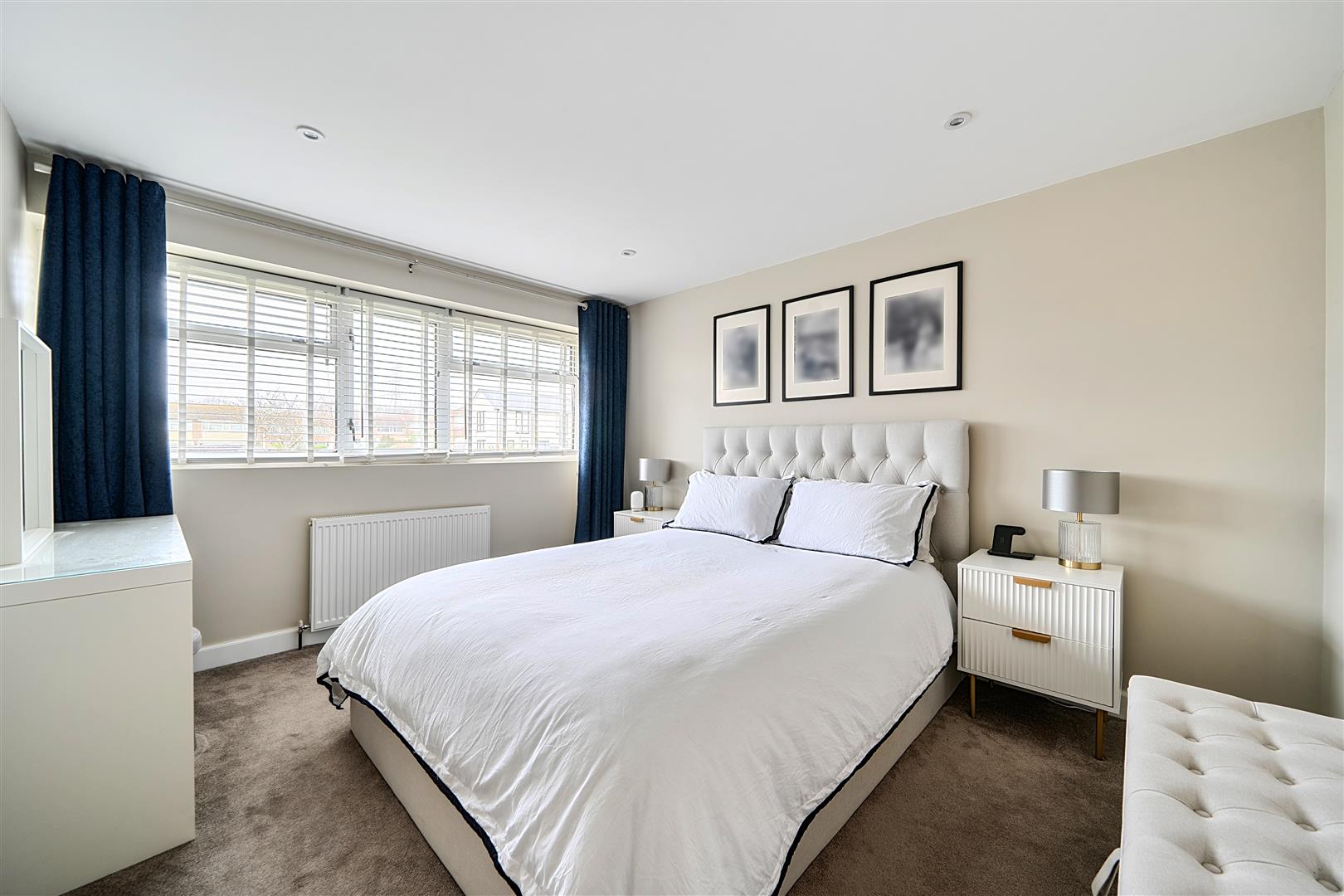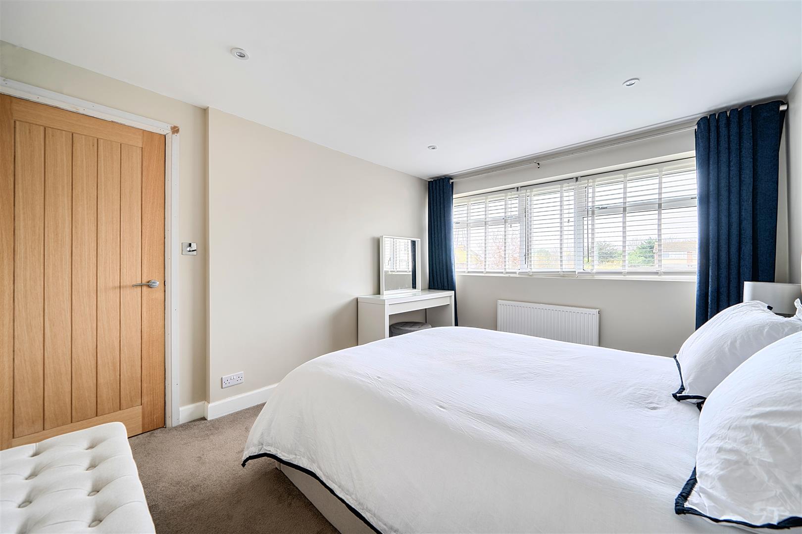 radiator, newly laid carpet, inset downlighters, upvc double glazed window with made to measure blinds