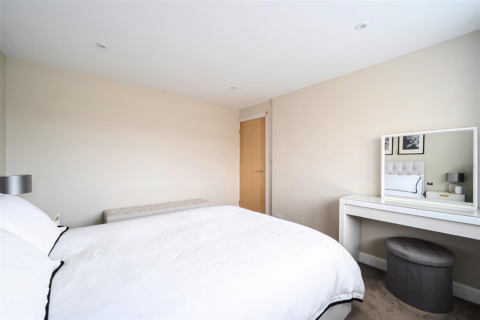 newly fitted carpet, a range of fitted wardrobes with five doors (one mirrored), radiator, inset downlighters, upvc double glazed window